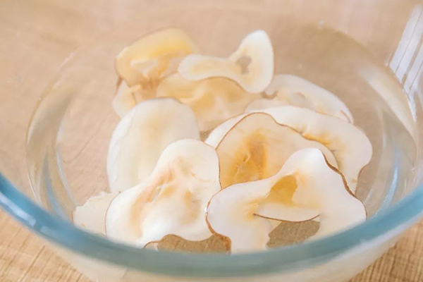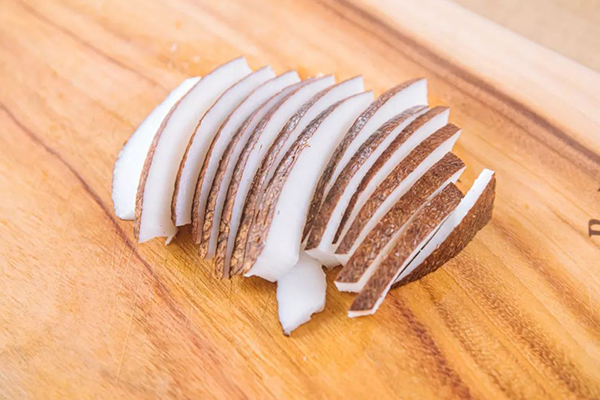 1、製(zhì)作椰汁湯:將100g椰肉切成片。
